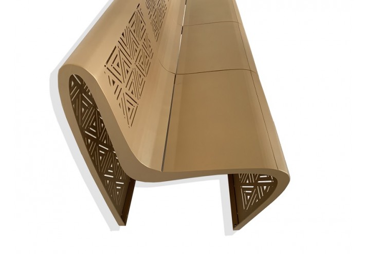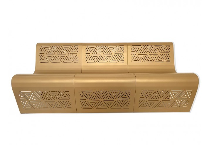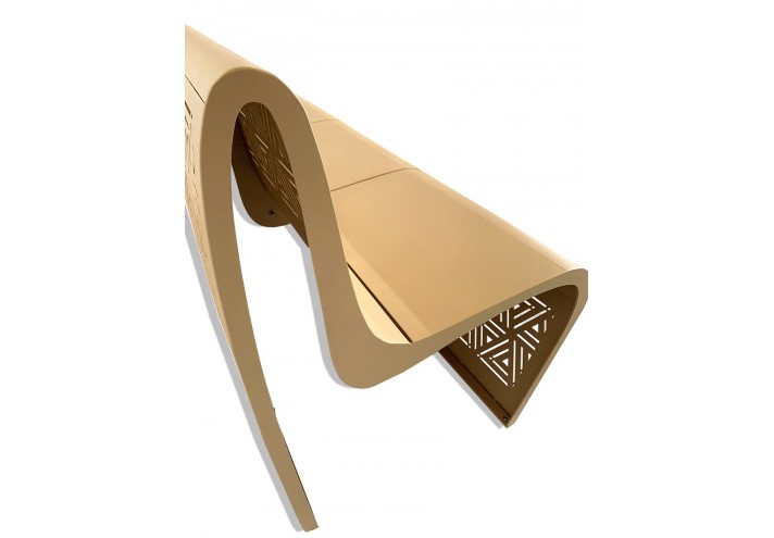 Les assises KEHOPS, disponibles en fauteuil et en banc sont l’âme de cette collection. Leur gracieuse structure très arrondies rappelle les dunes entourant les pyramides, elles-mêmes représentées par les motifs triangulaires découpés avec précision dans l’acier ciré. Cet envoûtant modèle peut aussi bien s’adapter à un environnement urbain qu’un intérieur chic. Ces assises embrassent l’esthétisme et le symbolisme des pyramides, une des plus vieilles constructions humaines encore intact.